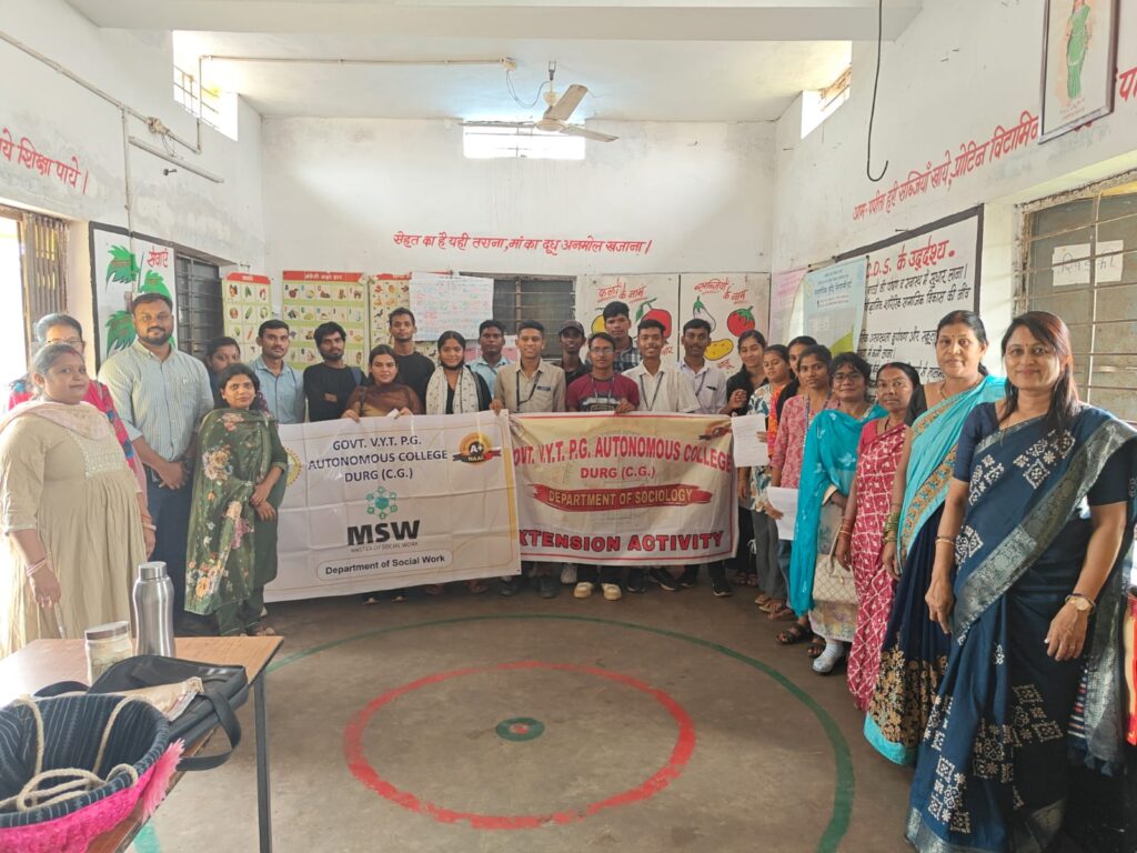 यह गतिविधि समाजशास्त्र विभाग की विभागाध्यक्ष डॉ. एलिजाबेथ भगत के मार्गदर्शन में संपन्न हुई। कार्यक्रम में विभाग की सहायक प्राध्यापक श्रीमती उमा आडिल, अतिथि सहायक प्राध्यापक डॉ. रीना ताम्रकार, शालिनी मेश्राम, डॉ. दीपा बाईन तथा समाजकार्य विभाग के सहायक प्राध्यापक निखिल देशलहरा उपस्थित रहे। दोनों विभागों के छात्र-छात्राओं ने सक्रिय सहभागिता करते हुए कार्यक्रम को सफल बनाया।