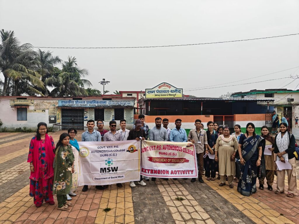 गतिविधि के तहत विभाग के छात्र-छात्राओं को महाविद्यालय के गोद ग्राम थनौद ले जाया गया, जहां उन्होंने विभिन्न सामाजिक कार्यों एवं सामुदायिक सहभागिता से जुड़ी गतिविधियों का संचालन किया। सर्वप्रथम विद्यार्थियों ने ग्राम के आंगनबाड़ी केंद्र, ग्राम पंचायत एवं अन्य सामुदायिक संस्थानों से संपर्क कर विभिन्न सामाजिक एवं प्रशासनिक जानकारियां एकत्र कीं तथा उन्हें निर्धारित साक्षात्कार अनुसूची प्रपत्र में दर्ज किया।