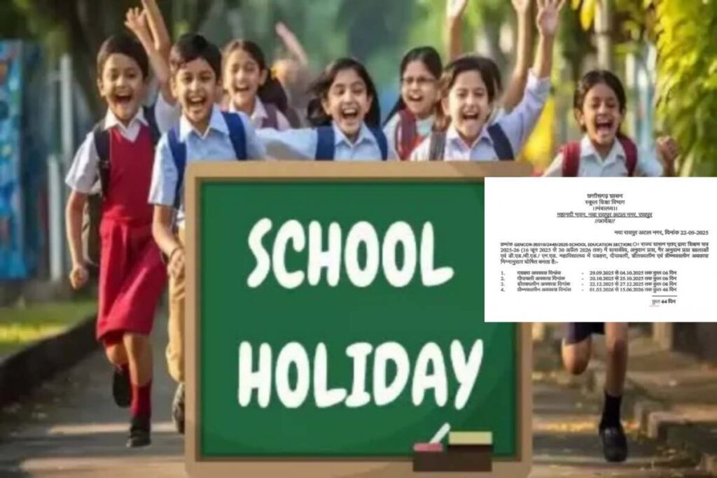 रायपुर। छत्तीसगढ़ स्कूल शिक्षा विभाग ने 64 दिनों का अवकाश जारी किया है। स्कूल शिक्षा विभाग के अवर सचिव आरपी वर्मा ने यह आदेश जारी किया है।