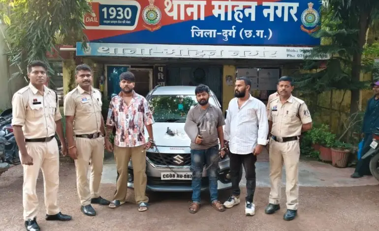 दुर्ग जिले के मोहन नगर थाना क्षेत्र में पुलिस ने एक बड़ी कार्रवाई करते हुए कट्टा लहराकर लोगों को डराने-धमकाने वाले तीन बदमाशों को गिरफ्तार किया है। इनके कब्जे से एक देशी कट्टा, जिंदा कारतूस, पांच मोबाइल फोन और एक बलेनो कार बरामद की गई है।