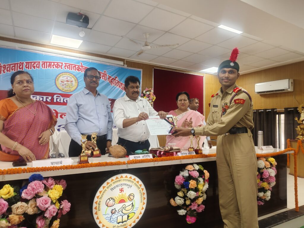 दुर्ग | शासकीय विश्वनाथ यादव तामस्कर स्नातकोत्तर स्वशासी महाविद्यालय, दुर्ग में सोमवार को वार्षिक पुरस्कार वितरण समारोह का भव्य आयोजन किया गया। कार्यक्रम के मुख्य अतिथि, उच्च शिक्षा दुर्ग संभाग के अपर संचालक डॉ. राजेश पाण्डेय ने विद्यार्थियों को जीवन के प्रति नई दृष्टि प्रदान करते हुए कहा, “जिंदगी वैसी नहीं होती जैसी दिखती है, हमें अपने परिश्रम से इसे अपनी आवश्यकताओं के अनुरूप ढालना होता है।”