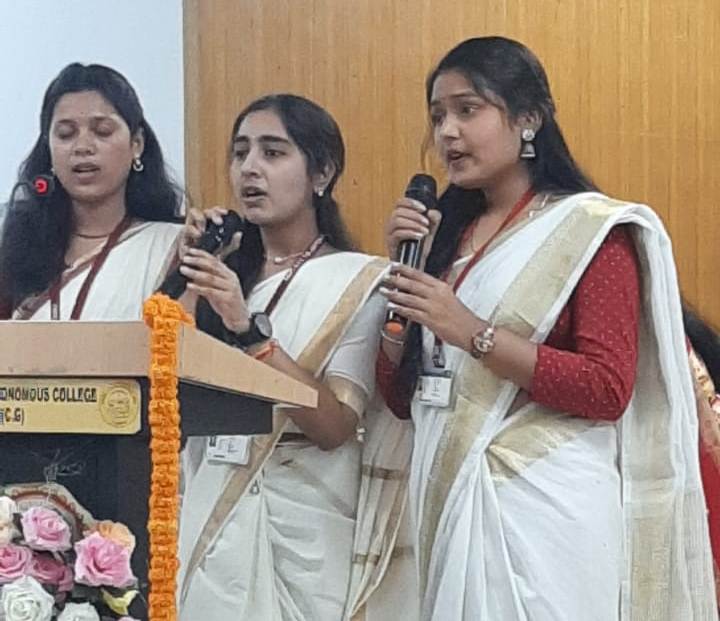 कार्यक्रम की शुरुआत सरस्वती वंदना, स्वागत गीत और छत्तीसगढ़ राज्य गीत के भावपूर्ण प्रस्तुतिकरण से हुई, जिसे महाविद्यालय की छात्राओं मुस्कान यादव, नमिता और श्वेता श्रीवास ने प्रस्तुत किया। कार्यक्रम का कुशल संचालन डॉ. ज्योति धारकर और डॉ. संजू सिन्हा ने किया।