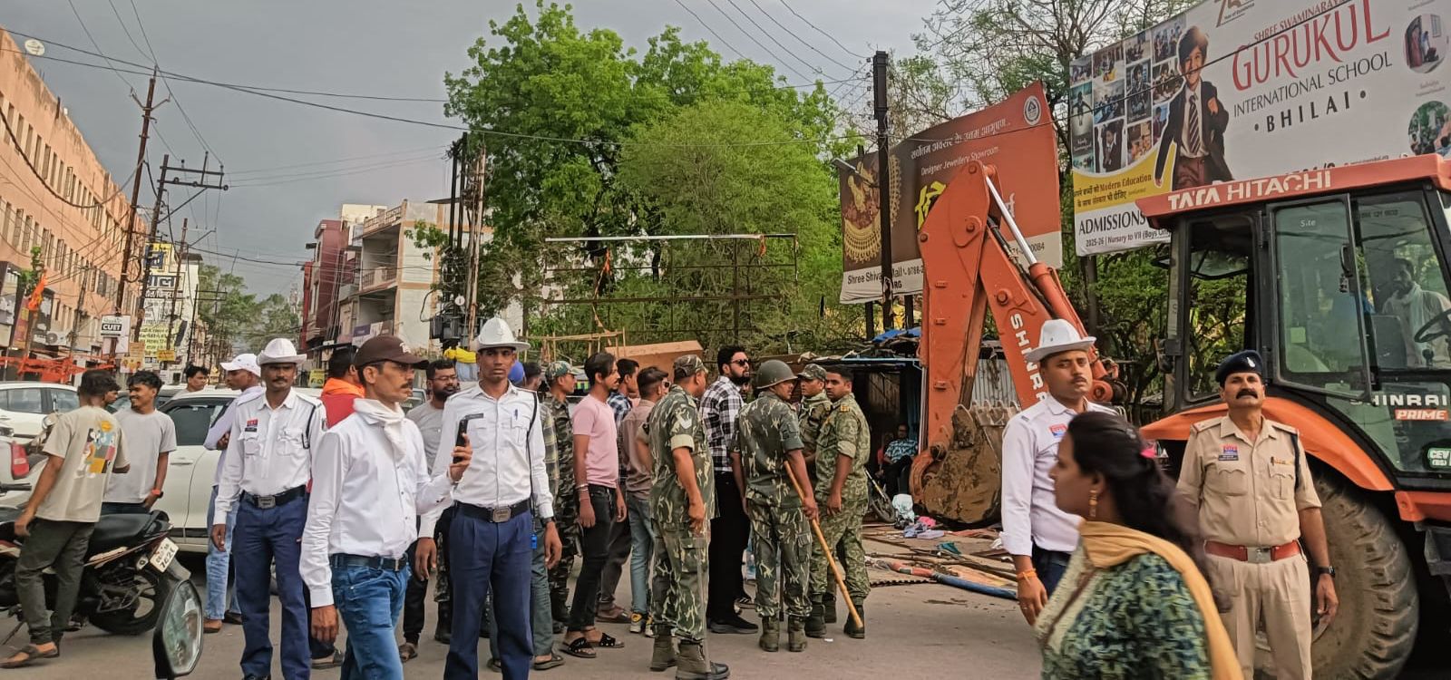 इसी कड़ी में दिनांक 02 मई 2025 से इंदिरा मार्केट, दुर्ग क्षेत्र में सड़क पर किए गए अवैध निर्माण एवं अतिक्रमण को हटाने की संयुक्त कार्यवाही नगर निगम दुर्ग के सहयोग से की जा रही है।