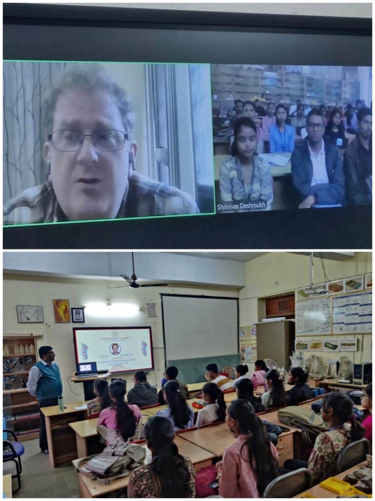 डॉ. एस.डी. देशमुख एवं डॉ. प्रशांत श्रीवास्तव ने संयुक्त रूप से जानकारी दी कि प्रोफेसर शैलनट भूवैज्ञानिक फील्ड वर्क हेतु छत्तीसगढ़ के सोनाखान तथा कोरबा एवं कटघोरा आदि क्षेत्रों में आए हुये है तथा पिछले एक सप्ताह से विभिन्न चट्टानों, खनिजों का भूवैज्ञानिक आध्ययन कर रहे है। प्रोफेसर शैलनट अमेरिका, चीन, कनाडा, मैक्सिको, आर्कटिक आदि क्षेत्रों में भूवैज्ञानिक अध्ययन कर चुके है। आज विद्यार्थियों से चर्चा के दौरान प्रोफेसर शैलनट ने कहा कि भारत के जिन क्षेत्रों में वे भूवैज्ञानिक फील्ड वर्क कर रहे है. उनकी आयु लगभग 3.5 बिलियन वर्ष है। प्रोफेसर शैलनट ने भूगर्भशास्त्र के विद्यार्थियों से कहा कि विषय को समझने के लिए ज्यादा से ज्यादा फील्ड वर्क ईमानदारी पूर्वक करें। उन्होंने विद्यार्थियों को विदेश में अध्ययन करने के अवसरों की विस्तार से जानकारी दी। प्रोफेसर शैलनट के अनुसार पूरे विश्व के विद्यार्थियों का नजरिया एवं स्तर लगभग एक समान है। उन्होंने विद्यार्थियों से नये खनिज निक्षेप खोजें जाने हेतु प्रयत्न करने पर बल दिया। आज प्रोफेसर शैलनट से प्रश्न पूछने वालों में भूगर्भशास्त्र विभाग के स्नातक एवं स्नातकोत्तर विद्यार्थी कु रुचि देशमुख कु फाल्गुनी साहू एवंद्र कुमार, अर्जुन, दीपा साहू मानसी जंघेल, कु झलक मिश्रा तथा कुसुम पटेल शामिल थे। ऑनलाईन विचार-विमर्श के अंत में डॉ. प्रशांत श्रीवास्तव ने धन्यवाद ज्ञापन किया। इस अवसर पर भूगर्भशास्त्र विभाग के अतिथि प्राध्यापक डॉ. इन्द्रजीत साकेत एवं डॉ. राहुल द्विवेदी भी उपस्थित थे।