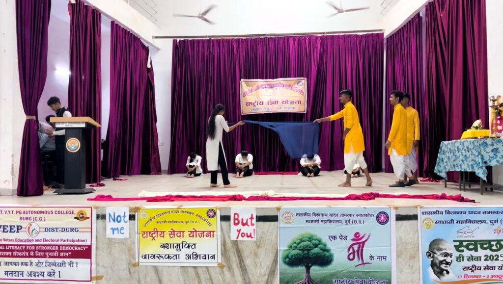दुर्ग।शासकीय विश्वनाथ यादव तामस्कर स्नातकोत्तर स्वशासी महाविद्यालय दुर्ग की राष्ट्रीय सेवा योजना इकाई द्वारा राष्ट्रीय सेवा योजना स्थापना दिवस बड़े उत्साह और गरिमा के साथ मनाया गया।