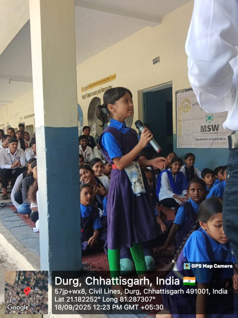 कार्यक्रम अधिकारी प्रो. मीना मान, तरुण कुमार साहू एवं सह-कार्यक्रम अधिकारी सुदेश कुमार के मार्गदर्शन तथा प्रभारी व्याख्याता निखिल देशलहरा के नेतृत्व में विद्यालयों के छात्र-छात्राओं को पौष्टिक आहार के महत्व तथा पोषण संबंधी विभिन्न जानकारियों से अवगत कराया गया।