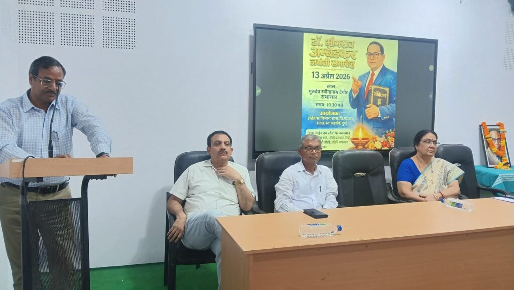 रायपुर। डॉ. भीमराव अंबेडकर की जयंती के अवसर पर शासकीय विश्वनाथ यादव तामस्कर स्नातकोत्तर स्वशासी महाविद्यालय के इतिहास विभाग द्वारा ‘बाबा साहेब का प्रदेय’ विषय पर एक विचार गोष्ठी का आयोजन किया गया। कार्यक्रम में विद्यार्थियों एवं शिक्षकों ने अंबेडकर के जीवन, संघर्ष, शिक्षा, सामाजिक-आर्थिक एवं राजनीतिक चिंतन के साथ-साथ उनके संवैधानिक योगदान पर विस्तार से चर्चा की।
