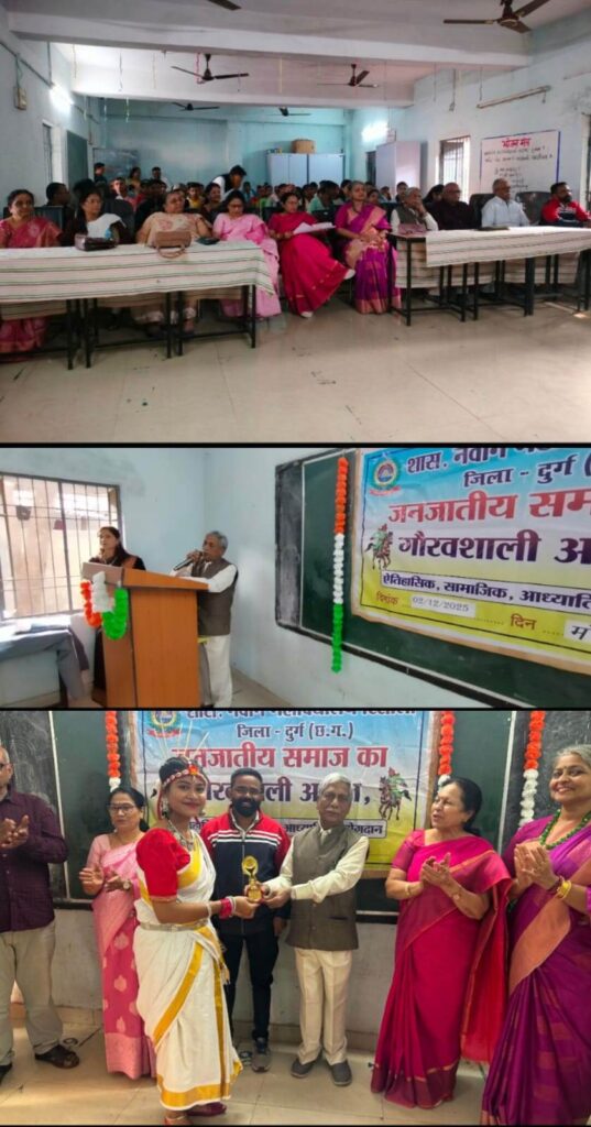 रिसाली। शासकीय नवीन महाविद्यालय रिसाली में जनजातीय समाज की समृद्ध विरासत, संघर्षों, परंपराओं एवं उनके अमूल्य सामाजिक-ऐतिहासिक योगदान पर आधारित विषय “गौरवशाली अतीत—ऐतिहासिक, सामाजिक एवं आध्यात्मिक योगदान” पर एक विशेष कार्यक्रम का आयोजन किया गया। कार्यक्रम का मुख्य उद्देश्य जनजातीय समुदाय की सांस्कृतिक धरोहर को समाज और नई पीढ़ी तक पहुँचाना रहा।