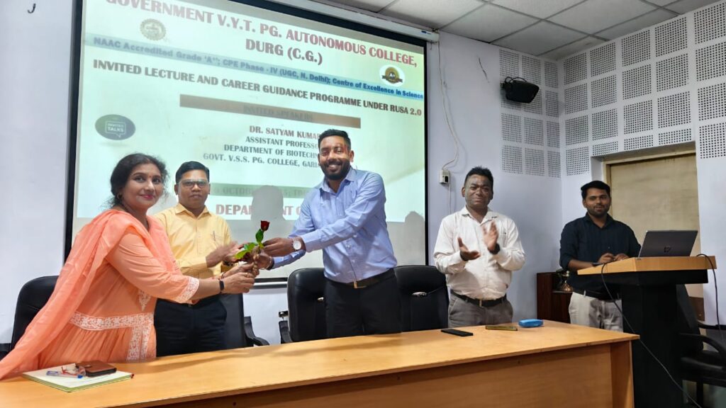 दुर्ग। शासकीय विश्वनाथ यादव तामस्कर स्नातकोत्तर स्वशासी महाविद्यालय, दुर्ग के वनस्पति शास्त्र विभाग में दिनांक 16 अक्टूबर 2025 को अतिथि व्याख्यान एवं कैरियर मार्गदर्शन कार्यक्रम का सफल आयोजन किया गया। यह कार्यक्रम रूसा 2.0 (RUSA 2.0) के अंतर्गत शैक्षणिक संवर्धन गतिविधि के रूप में आयोजित किया गया।