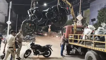 फुटपाथ पर चल रही अवैध पार्किंग पर पुलिस की कार्रवाई, कई वाहनों के कटे ई-चालान