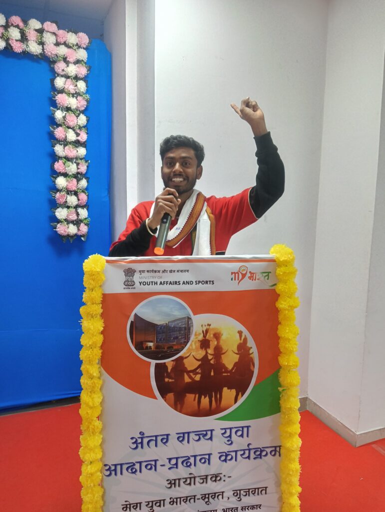 इस अवसर पर पुष्पराज साहू ने वाद-विवाद प्रतियोगिता में भाग लेकर अपने विचार प्रभावशाली ढंग से प्रस्तुत किए। साथ ही उन्होंने छत्तीसगढ़ की पारंपरिक लोकनृत्य ‘राउत नाच’ की शानदार प्रस्तुति देकर राज्य की समृद्ध सांस्कृतिक विरासत को राष्ट्रीय मंच पर प्रदर्शित किया। कार्यक्रम के अंतिम दिवस उन्होंने अपने अनुभव साझा करते हुए अतिथियों के समक्ष कार्यक्रम से मिले ज्ञान और प्रेरणा को प्रस्तुत किया, जिसे सराहना मिली।