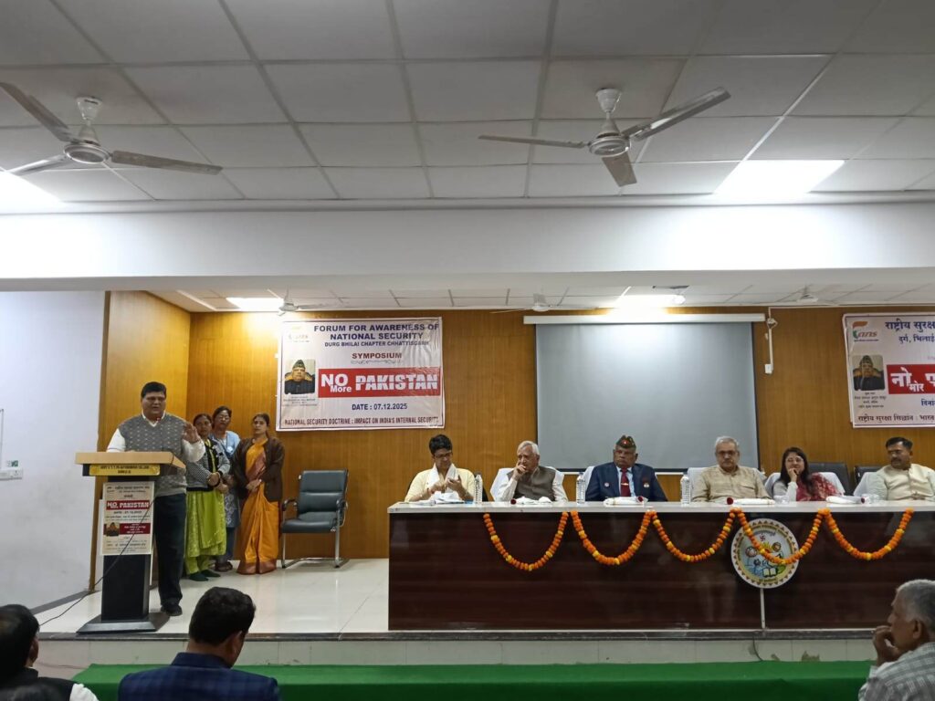 राष्ट्रीय सुरक्षा जागरण मंच, दुर्ग–भिलाई चैप्टर द्वारा शासकीय विश्वनाथ यादव तामस्कर स्नातकोत्तर स्वशासी महाविद्यालय, दुर्ग में “राष्ट्रीय सुरक्षा सिद्धांत : भारत की आंतरिक सुरक्षा पर प्रभाव” विषय पर एक महत्त्वपूर्ण संगोष्ठी का आयोजन किया गया। संगोष्ठी का मुख्य फ़ोकस “No More Pakistan” मुद्दे और उसके राष्ट्रीय सुरक्षा पर पड़ने वाले प्रभावों पर रहा।