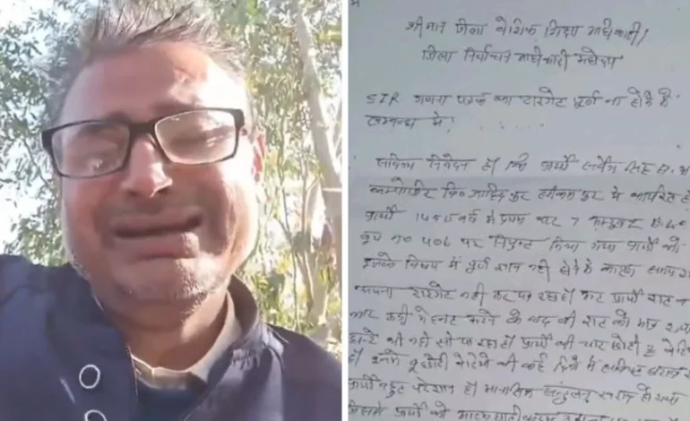 मुरादाबाद। विशेष गहन पुनरीक्षण (SIR) के काम के दबाव ने एक और मासूम जान ले ली। मुरादाबाद में शिक्षक सर्वेश सिंह ने रविवार देर रात आत्महत्या कर ली। मरने से पहले उन्होंने 3 पन्नों का सुसाइड नोट लिखा और 2 मिनट 40 सेकंड का वीडियो रिकॉर्ड किया, जिसमें वे फूट-फूटकर रोते हुए पत्नी से माफी मांगते दिखते हैं।