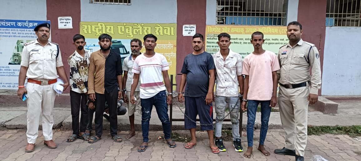 मामले की गंभीरता को देखते हुए श्रीमान वरिष्ठ पुलिस अधीक्षक महोदय श्री विजय अग्रवाल, अतिरिक्त पुलिस अधीक्षक महोदय (ग्रामीण) श्री अभिषेक झा एवं SDOP महोदय पाटन श्री अनुप कुमार लकड़ा के द्वारा लूट के आरोपियों पर कठोर कार्यवाही करने निर्देशित किया गया। विवेचना के दौरान तत्काल त्रिनयन एप्प के जरिये घटना स्थल के आसपास लगे सीसीटीवी कैमरों के फुटेज चेक किये गये। पुलिस के सूचना तंत्र को सक्रिय करते हुए सघनता से आरोपियों की पता तलाश की गई कि विश्वस्त् सूत्रों से सूचना प्राप्त हुई कि संदेही स्टेशन मरोदा शीतला तालाब के पास बैठे है, कि सूचना पर पुलिस टीम द्वारा दबिश देकर घेराबंदी कर 07 व्यक्तियों को हिरासत में लिया गया। जिनसे कड़ाई से पुछताछ करने पर अपना नाम 01. दुर्गेश जोशी उर्फ बाला पिता बालक दास जोशी उम्र 19 वर्ष निवासी स्टेशन मरोदा 02. सोनू नेताम उर्फ झोलटा पिता जितेन्द्र नेताम उम्र 22 वर्ष दोनों निवासी शिवपारा मरोदा 03. अरूण खुटेल पिता नारायण उम्र 21 वर्ष निवासी स्टेशन के पास विजय चौक मरोदा 04. समीर धृतलहरे पिता हेमंत कुमार उम्र 19 वर्ष निवासी सुपेला डी ब्लॉक दक्षिण गंगोत्री 05. दुर्गेश सेन पिता अमृत लाल सेन उम्र 34 वर्ष निवासी न्यू कृष्णा नगर सुपेला 06. नीरज आडिल पिता पुरषोत्तम उम्र 26 वर्ष निवासी मिनीमाता पारा स्टेशन मरोदा 07. बोधी सोनकर पिता दल्लू सोनकर उम्र 53 वर्ष निवासी इंदिरा चौक शीतला मंदिर के पास मरोदा थाना नेवई जिला दुर्ग का होना बताये तथा दिनांक 27.04.2025 को दोपहर करीब 02.00 बजे ग्राम उमरपोटी बोगदा पुलिया के पास कुछ राहगीरों के साथ मारपीट कर 20,000 रू0 नगदी, पर्स एवं एक मोबाईल फोन को लूट करना स्वीकार किया। आरोपियों के कब्जे से एक नग मोबाईल ओप्पो कंपनी का कीमती 10,000 रू0, नगदी रकम 14,000 रू0 एवं एक जेंट्स पर्स को बरामद कर जप्त किया गया। आरोपियों को विधिवत् गिरफ्तार न्यायिक रिमाण्ड पर भेजा गया।