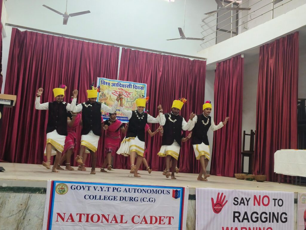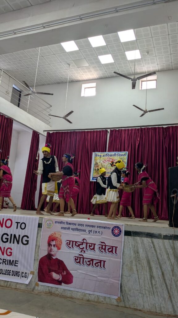 दुर्ग। भिलाई साइंस कॉलेज में विश्व आदिवासी दिवस उत्साहपूर्वक मनाया गया। इस अवसर पर चन्द्रशेखर आजाद, भगत सिंह, विवेकानंद और सुभाषचंद्र बोस हाउस के विद्यार्थियों ने अपनी-अपनी प्रतिभा का प्रदर्शन किया।
