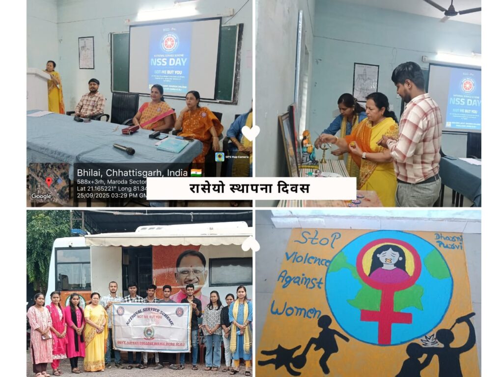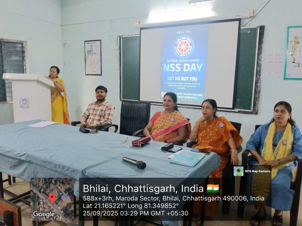 दुर्ग शासकीय नवीन महाविद्यालय रिसाली में प्राचार्य महोदय जी के मार्गदर्शन एवं राष्ट्रीय सेवा योजना (NSS) के तत्वावधान में एनएसएस स्थापना दिवस कार्यक्रम का आयोजन किया गया।